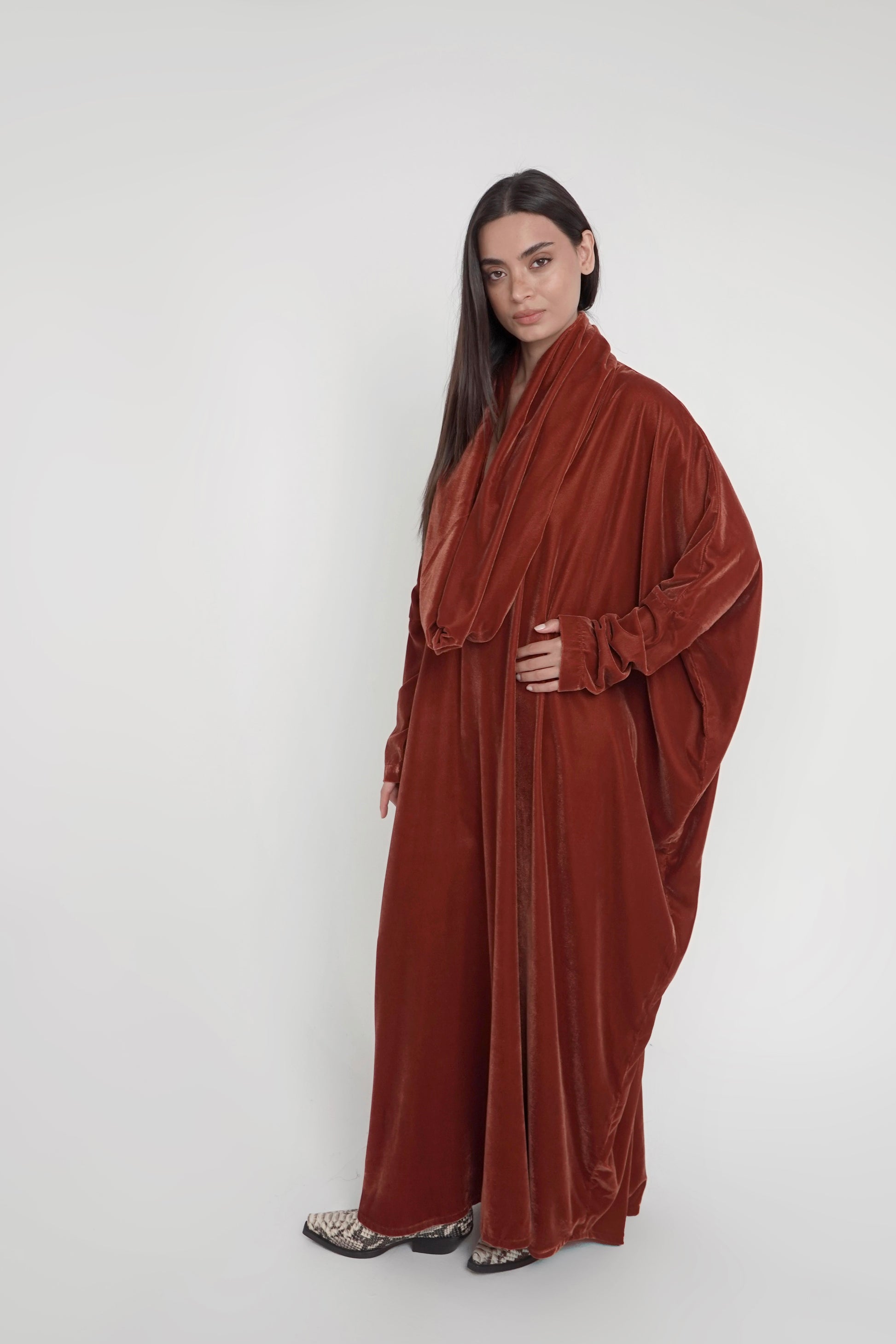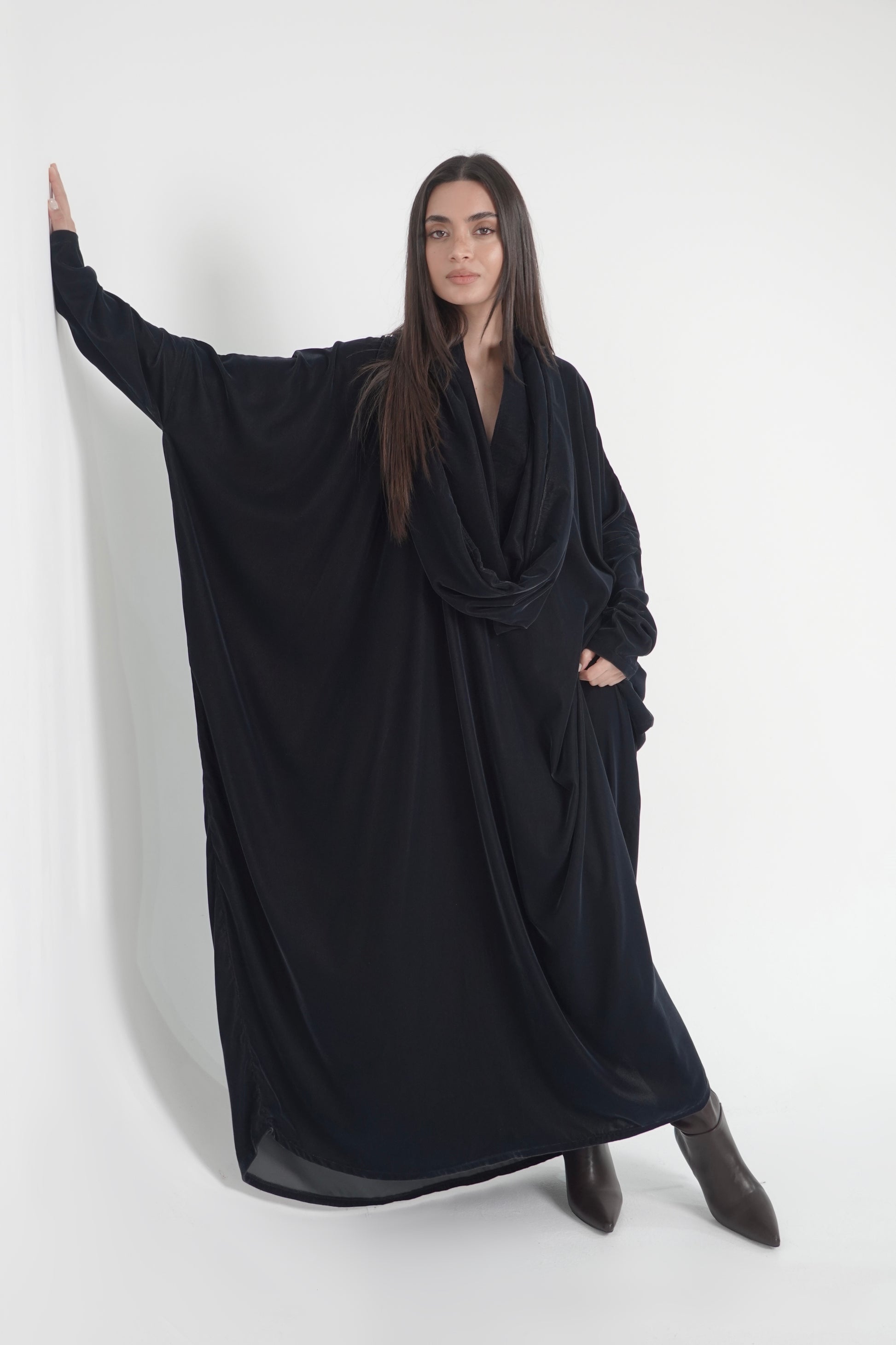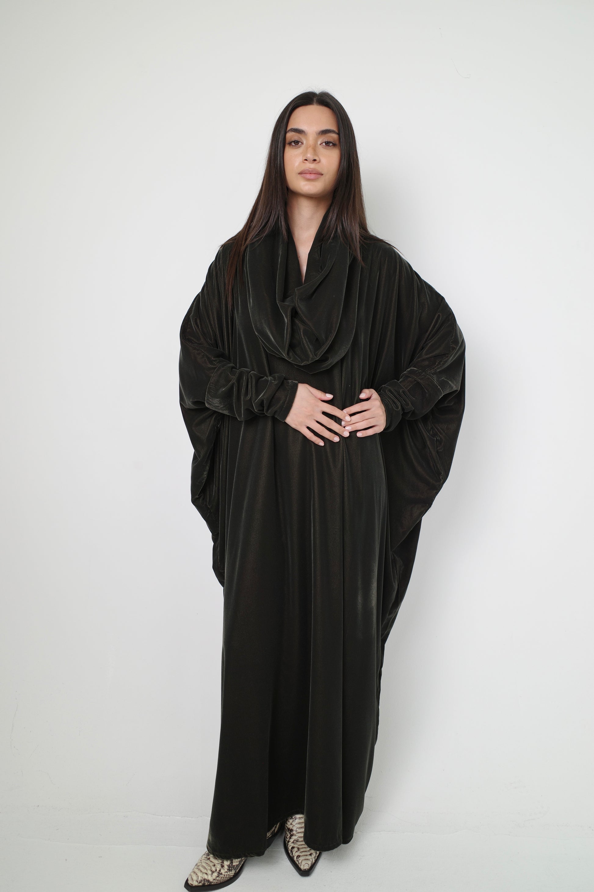 A statement free-size daraa with a wrapped scarf neckline, finished with tailored sleeves for a sleek contrast.